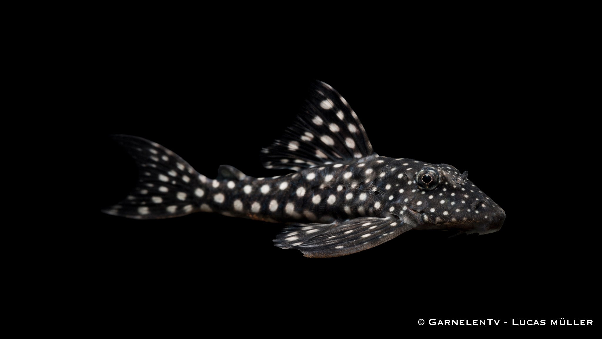 Der L102 Schneeball Harnischwels Hypancistrus cf inspector ist ein kontrastreicher Harnischwels, der durch seine hellen, runden Punkte auf dunklem Grund sofort auffällt. Diese schneeballartige Zeichnung wirkt besonders plastisch und bleibt bei guter Pflege dauerhaft klar. Die kompakte Körperform und das kräftige Saugmaul sind typisch für Vertreter der Gattung Hypancistrus und spiegeln ihre Anpassung an strukturreiche Lebensräume wider.