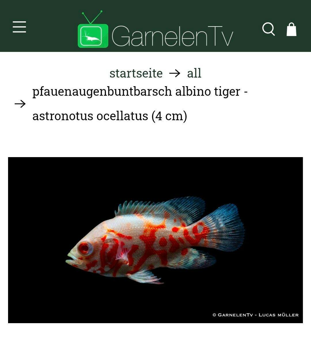 Pfauenaugenbuntbarsch albino Tiger - Astronotus ocellatus (4 cm)